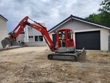 Terrassement / VRD : Préparation et nivellement de terrain pour des fondations solides.